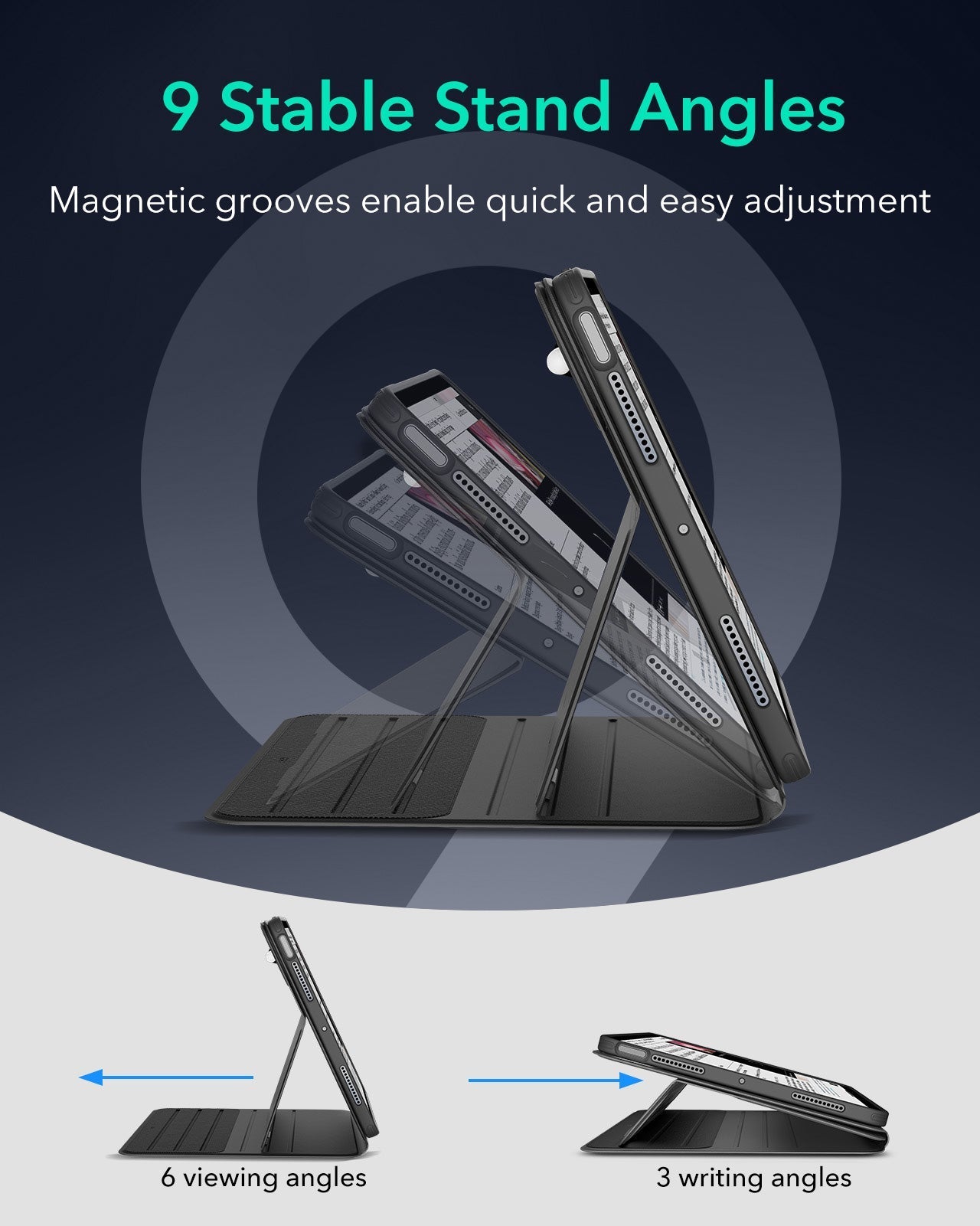 The all-in-one magnetic iPad case with a detachable stand gives you 6 viewing angles and 3 writing angles. Easily switch between portrait and landscape, while keeping your iPad fully protected for work, creativity, and entertainment.