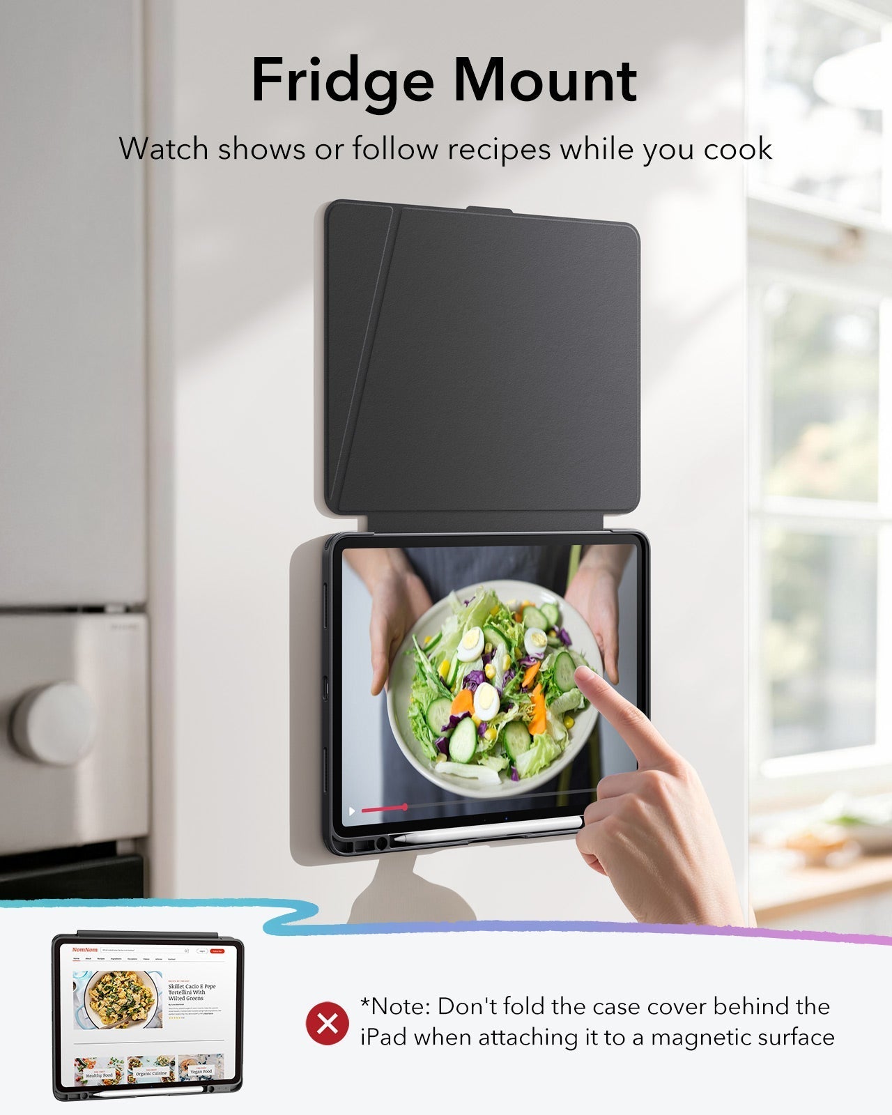 Three angle options in landscape mode give you the right setup for everything—watching movies, writing, or video calls. Flip it vertically for browsing. The case holds your stylus without interfering with magnetic charging and keeps it surprisingly stable even on soft surfaces like your couch, bed, or lap—no more slipping.