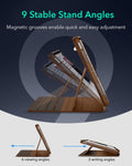 Ultra-Stable Stand: wide support brackets magnetically lock into grooves in the base, giving it superior stability, even when using your iPad on your lap