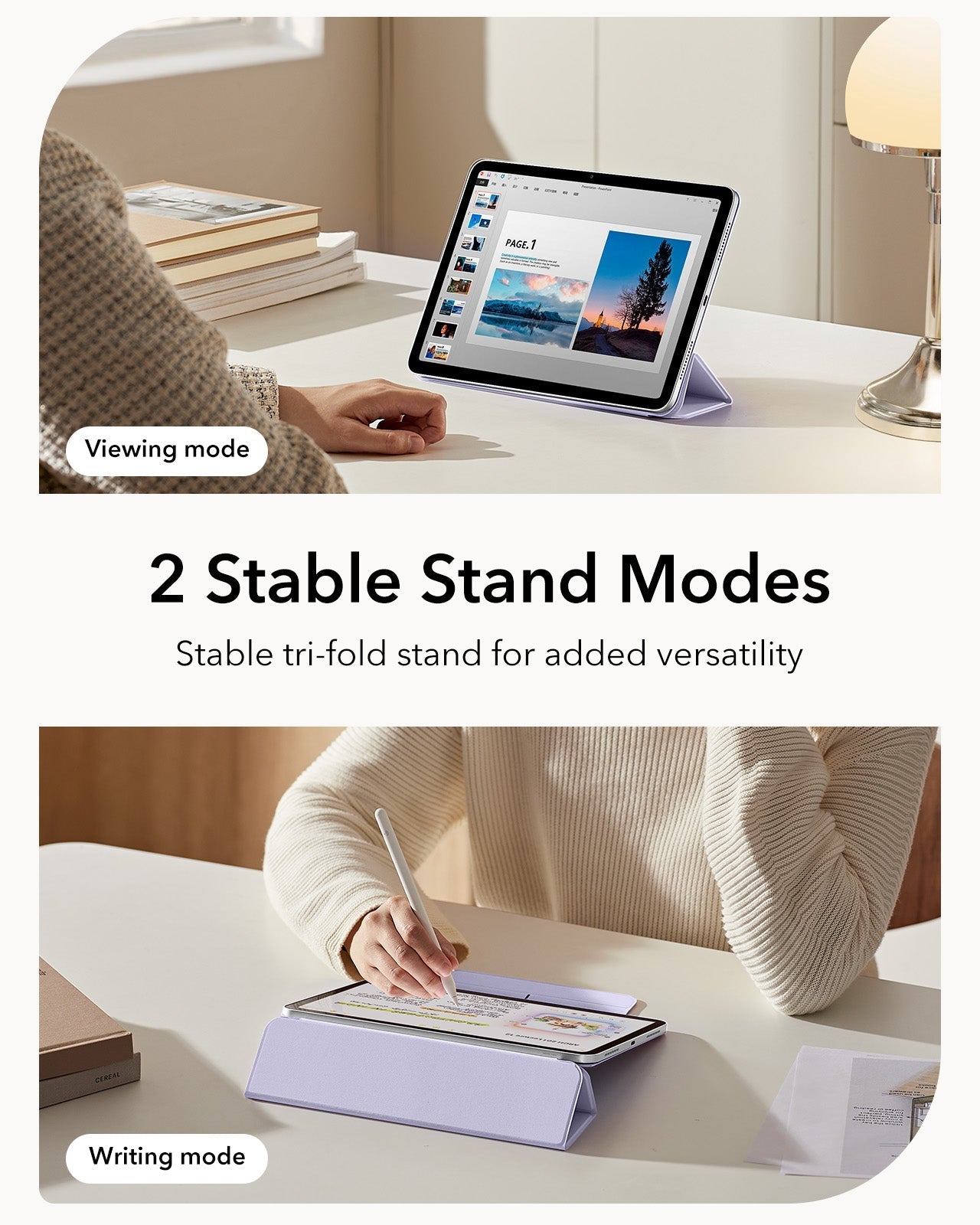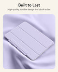 This iPad case features a strong magnetic attachment, durable materials for long-lasting use, and full support for Apple Pencil Pro with wireless charging compatibility. Its slim, lightweight design offers easy portability, while the front cover doubles as a stable stand for viewing, typing, and drawing.