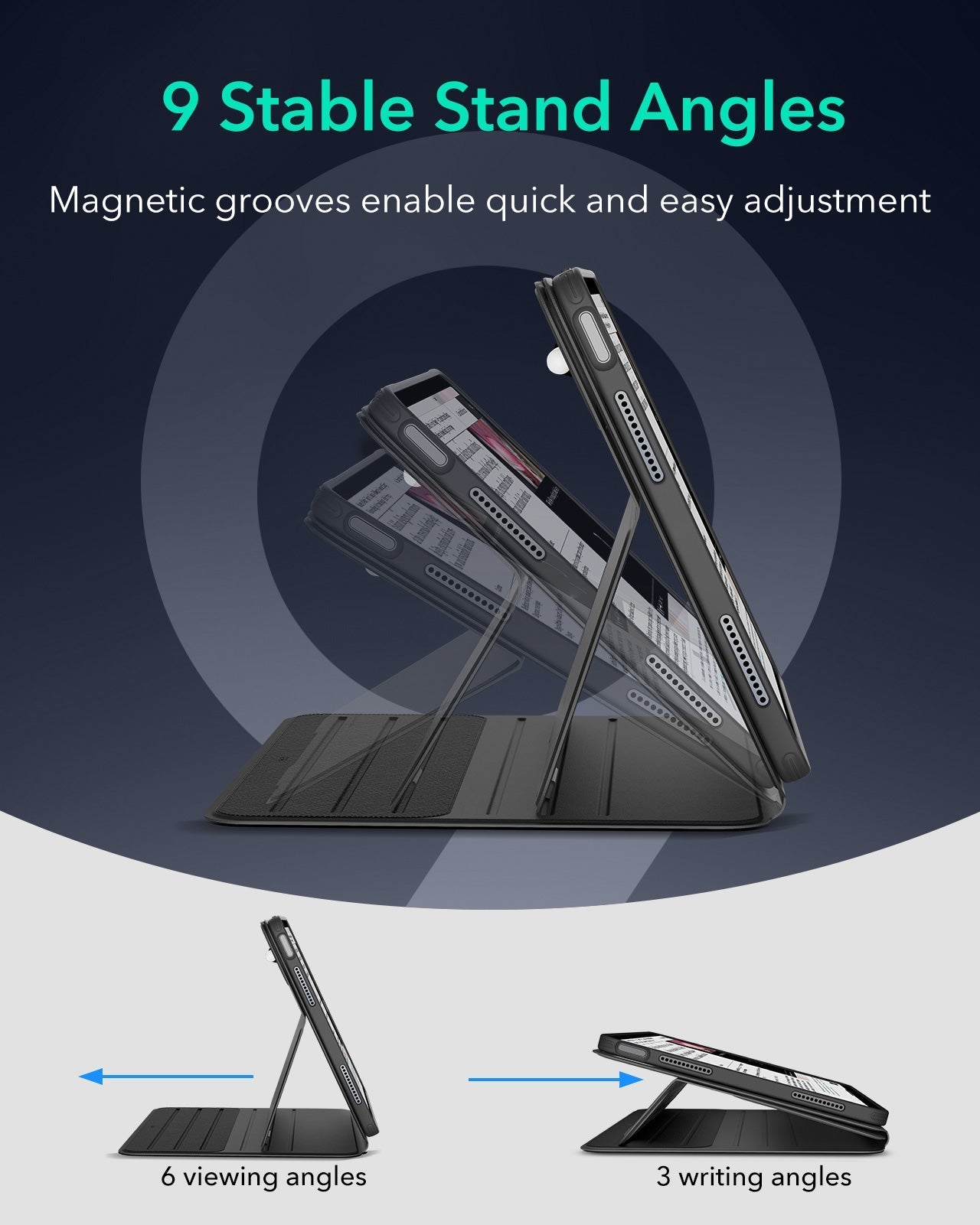 The all-in-one magnetic iPad case with a detachable stand gives you 6 viewing angles and 3 writing angles. Easily switch between portrait and landscape, while keeping your iPad fully protected for work, creativity, and entertainment.